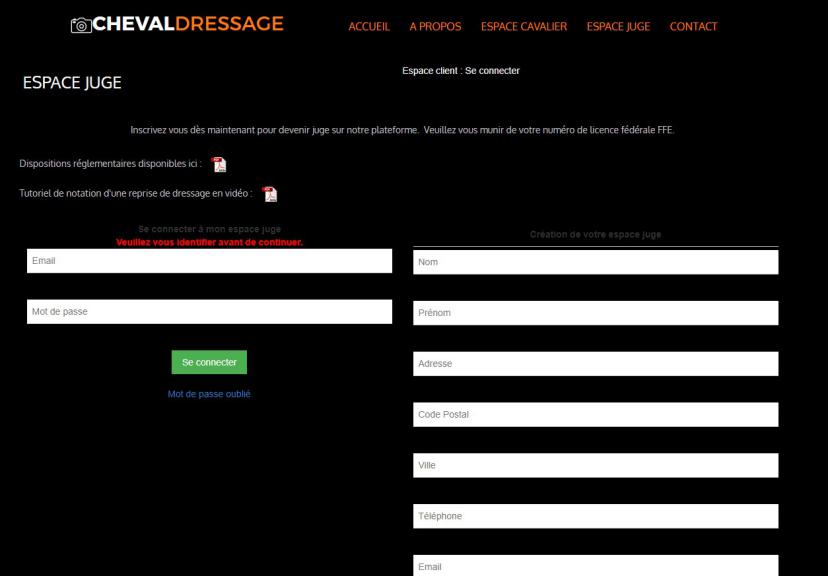 Commencez par créer un compte sur la page « Espace Juge » puis identifiez vous avec votre mail et mot de passe. Vous recevrez un mail de confirmation de création de votre espace contenant votre identifiant et votre mot de passe.