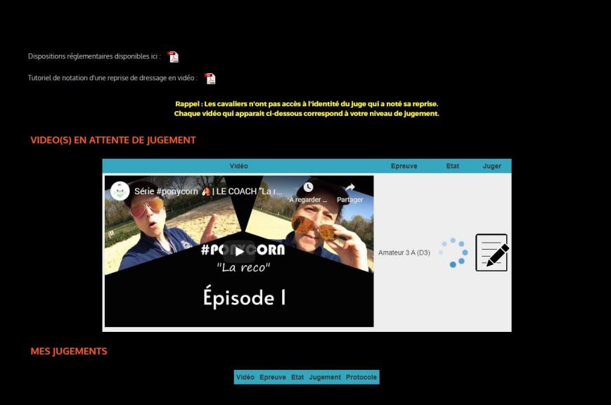 Dans la partie « Vidéo en attente de jugement », vous retrouverez toutes les vidéos qui sont en attente d’un jugement. Seules les reprises compatibles avec votre niveau de jugement sont affichées.