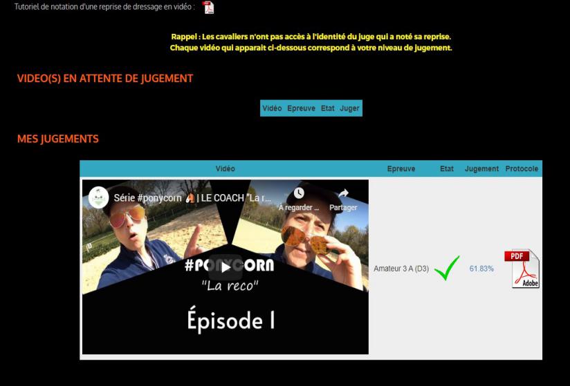 Une fois la vidéo notée par le juge, vous recevrez par mail votre protocole avec le commentaire. Vous pouvez retrouver votre historique à tout moment dans votre espace personnel.